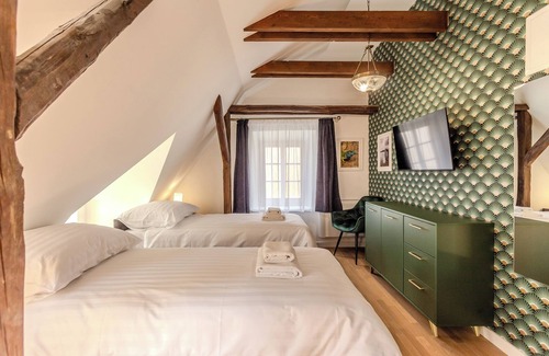 Located inside the Fulop Panzio complex, the Green Lizard Room accommodates up to 2 guests, making it ideal for a romantic retreat or solo travellers. The interior offers a cosy ambience with modern amenities, including Free Wi-Fi and a Smart TV. There is a coffee machine, an electric kettle, and a fridge for light refreshments.