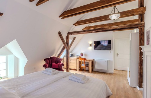 Outside, guests can unwind in the shared garden, which is fenced for privacy. For added comfort and relaxation, the property offers a wellness area in the back building, complete with a jacuzzi, an infrared sauna, and a Finnish sauna. Additional amenities include gated parking with an electric car charging station and a laundry service available at an extra cost. Breakfast can be arranged upon request.