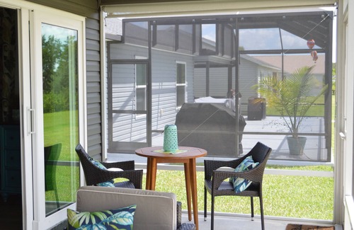 This lively decorated 2 bedroom 2 bathroom house is located in the southern part of the villages where you can enjoy the conservation areas while still being minutes away from nightly entertainment, daily activities, and more pools and golf courses than you can fit into just one visit to The Villages. Stay for a long weekend, a week, or stay for a whole month. Golf Cart is included with the rental.