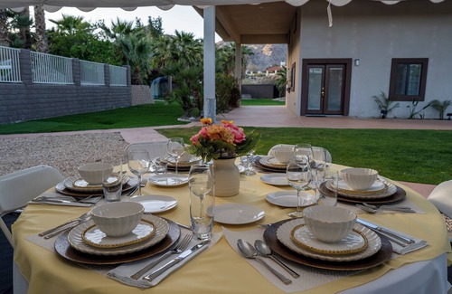 Best-rates for the Palm Desert house starts from $1,373 per night with includes Pet Friendly, Fireplace/Heating, Barbecue/Outdoor Cooking, Wellness Facilities, Internet, Air Conditioner, Pool, TV, Security/Safety, Bedding/Linens, Child Friendly, Hot Tub, Kitchen, Parking, Laundry with all other facilities. RBO matches every traveller with their perfect accommodation, whether you are travelling with a group, friends, family, or pets.