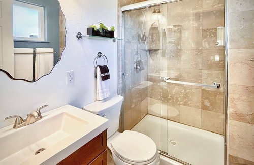 Open concept living area with central AC/Heat includes Kitchen, Dining and Living Room which opens up to a beautiful backyard through sliding glass door. Living room includes a big screen TV for streaming your personal apps or watch any of the DVDs provided for endless movie watching! Home is close to Legoland, beaches, Frontwave Arena, Oceanside pier and harbor and so much more!