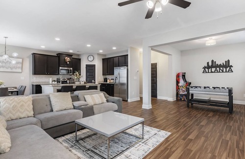 Fun Home with Arcade, Darts, Four-in-One Game Table, Fenced Yard is located in Lawrenceville. Fun Home with Arcade, Darts, Four-in-One Game Table, Fenced Yard provides accommodation, featuring Kitchen, Laundry, Air Conditioner, among other amenities. This House features Kitchen, Laundry, Air Conditioner, to make your stay a comfortable one.