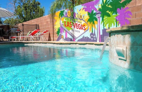Take a short trip to the Strip that's less than 15 miles away, or enjoy the sparkling swimming pool, hot tub, and grill in our private backyard. This home boasts a pool table, multiple 70 inch+ TVs with access to all major streaming sites, and tons of more entertainment!