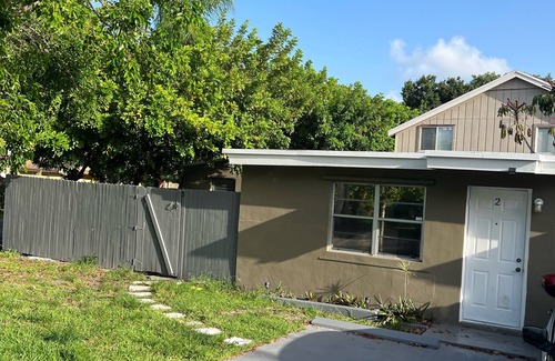This peaceful and centrally-located place, 10 mins to Hollywood Beach, 5 mins to the Hard Rock hotel, and 8 min. to the Hard Rock stadium. Newly painted with all the appliances, sleeps 4; private room sleeps 2 on bed size full, plus sofa bed in living room sleeps 2 more. Includes front yard and back patio, open storage space, and convenient parking space on same lot.