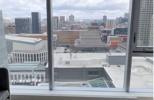 Elevate your experience with exclusive access to our state-of-the-art gym, a serene terrace, and a chic urban chalet, offering you spaces to relax and entertain in style. Situated at the epicenter of the Quartier des spectacles, our studio places you just steps away from the city's renowned universities and metro stations, connecting you effortlessly to the vibrant pulse of Montreal.