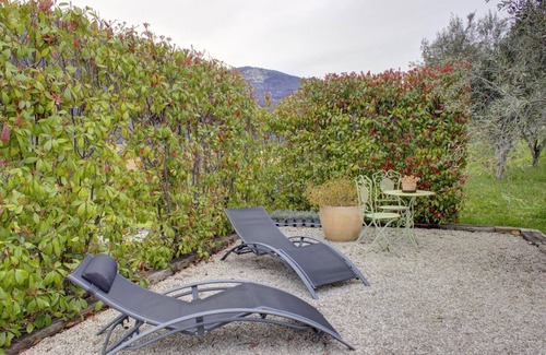 Single storey house adjoining another gîte (n°6316) : Entrance to living room opening onto terrace and including 1 sofa bed for 2 people (140x190), wood stove (wood provided), fully equipped open kitchen. Dining area. 1 Bedroom with 1 double bed (140x190). 1 Bedroom (choice of 2 single beds 90x190 or 1 double bed 160x190). Shower room with toilet. Private covered terrace with furniture. Shared agricultural land. Gîte fully accessible to people with reduced mobility. Baby equipment including bed, high chair and stroller on request. Including charges. Tourist tax extra. The gîte is located on a former organic farm on the hills of Nice overlooking the Var valley. Stay close to all leisure activities and services between sea and mountains. Old agricultural building completely renovated in an olive grove. Organic store on site.