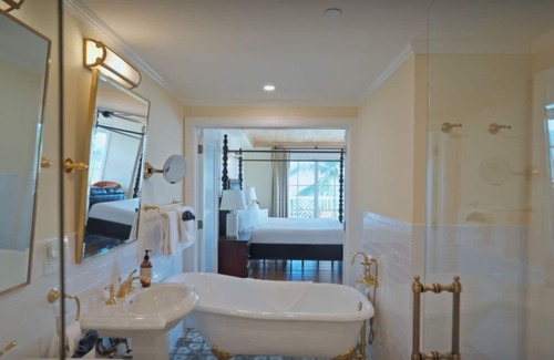 Step into luxury in the Galleon king suite. This room is adorned with gold accents as a tribute to the Spanish treasure galleon ships that once transported gold across the waters. A wraparound corner window offers a sprawling view so you can catch the sunrise and the sunset from the comfort of your room.