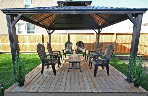 Our home also has a large back yard with a gazebo, patio furniture and coffee table for entertaining and relaxation! Enjoy! Although we do not provide a barbeque, guests are welcome to bring their own. NOTE: Our patio furniture is not available during the winter months and will be available between May 1 to October 31.