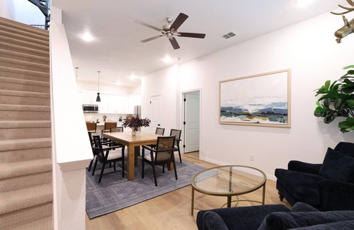 Relax in a spacious living area with modern amenities, unwind in the fully equipped kitchen, and enjoy a peaceful night's sleep in comfortable bedrooms adorned with cowboy-inspired decor. Step outside to a private rooftop patio for some fresh air!