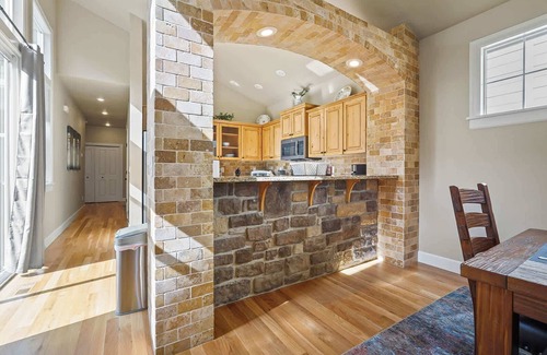 Garage and parking! You must enter through the front door and then use the wall button to open garage, please only park in garage or on the driveway around back!