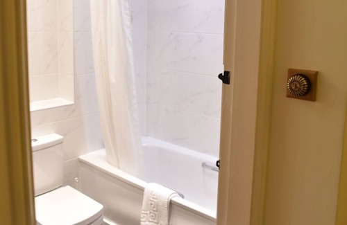 Offering a very generous sized lounge/dining room, this cosy and deceptively large basement apartment, in addition offers a modern small but fully equipped kitchen, bathroom including bath & shower, hallway and bedroom with king sized bed and will accommodate up to two guests – 500 sq ft. With free adjacent parking.