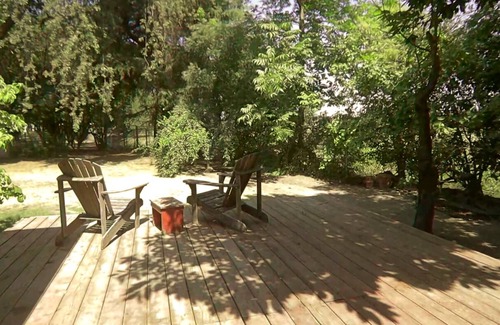 With sprawling backyard pets are welcome. The internet wifi connection is AT&T 5G. Fully stocked kitchen has been brought up to date. Towels and linens are included. There is a Maytag washer and Samsung dryer, full size refrigerator, dishwasher, microwave, new stove and oven. Fully functioning gas fireplace, for a cozy atmosphere on cooler nights, and of course central AC for those 'less cozy times'. Large backyard deck is optimal for sitting, reflecting, relaxing and watching the roses grow. The yards are spacious, populated by oaks, numerous fruit trees, walnut and ornamental trees. This house has historic value all its own. Not just because it was built in 1963, but because it was a project house built by College of Sequoia's Building and Trades Department. Its current owner having grown up in the house, has a small display of her mementos as a gold medalist during the 1964 Olympics in Japan. Lots of history in both the lovingly restored house and its owners!
