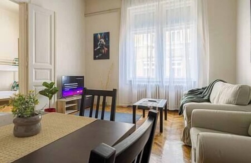 Discover this spacious and comfortable apartment, which can be an ideal choice for families or groups of friends who want to spend their stay in the enchanting city of Budapest. In terms of location, this apartment is also a perfect choice. Kertész Street is located in the heart of the city, so you can easily reach the main attractions, restaurants, and shopping opportunities, such as the New York Café, which is only a 1-minute walk away. The apartment features two bedrooms and a large living room, providing comfortable accommodation for up to 8 people. The fully equipped kitchen allows you to feel at home and even prepare your own meals. The air conditioning ensures a pleasant temperature in the apartment at all times, whether it's summer heat or winter cold. The entire property is for rent, only you and your friends (or family) will use it! We are available every day, at all hours! We always respond quickly to your messages, but please only call between 8 p.m. and 8 a.m. in case of an emergency. The apartment is excellently located in the heart of the city. The area around Kertész Street is vibrant and lively, filled with cultural attractions, restaurants, and shopping opportunities. Just a short walk away is the famous New York Café, where you can taste Budapest's renowned coffee culture. Additionally, you can easily reach the city's main landmarks and tourist attractions. The area is a great choice for anyone looking to explore the enchanting world of Budapest. There are excellent transportation options available around the apartment. Numerous bus and tram stops are located nearby, providing easy access to various parts of the city. Additionally, the metro station is within walking distance, allowing you to explore every corner of Budapest effortlessly. Parking: Parking is available on the streets in the surrounding area, but it is paid. Parking garages can also be found just a short walk away. Smoking: Smoking is strictly prohibited inside the apartment. However, a designated smoking area is available outside the property. Pets: We regret to inform you that pets are not allowed. Parties and Events: Please refrain from hosting parties or events in the apartment. We respect the peace and quiet of our neighbours. EVENTS AND PARTIES ARE STRICTLY PROHIBITED!!!! Extras: If you have any special requirements (e.g a crib for babies), please let us know in advance and we will do our best to accommodate your needs.