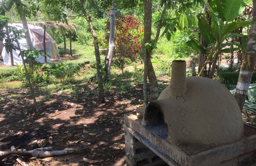 The parcel is divided for cristal water stream where you can refresh and take a bath mayan style. There are two Geodesic Domes located in spectacullar set up next to shade and the rapids of the river that will help you sleep like meditating. Both domes have a double bed, with confy 2017 matress, and a few more people can acomodate on the tarp covered cob floor with your own sleeping bag.
