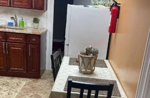 GORGEOUS SPACE IN A QUIET NEIGHBORHOOD; LOWER LEVEL APT WITH PRIVATE BATHROOM, BEDROOM WITH CRISP CLEAN LINENS & QUILT W/SHAMS, AIR CONDITIONER, KITCHEN WITH FULL SIZE FRIDGE, MICROWAVE /TOASTER, AND LIVING AREA. WASHER AND DRYER AVAILABLE ON PREMISES. NEST DOORBELL WITH CAMERA. CONVENIENT BODEGA AROUND THE CORNER TO SATISFY YOUR CRAVINGS OR SOME TRAVEL NEEDS.