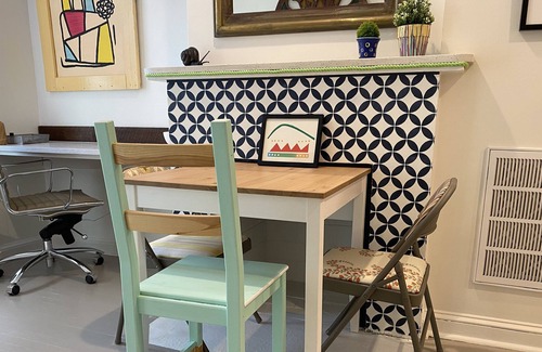 Our Georgetown Pied-a-Terre is a sunny 110 year old row house just a few doors off the historic C&O Canal. Be one of the first guests in this newly renovated and thoughtfully and beautifully decorated treasure of a home. This 1100+ square foot townhome features 2 bedrooms with 3 beds, a full bath, living room with comfy seating facing an exposed brick wall and smart TV. French doors open to a very large patio with bistro table for private meals alfresco. Speaking of meals, prepare your own in the well-thought-out kitchen which features a stove, microwave and toaster ovens for cooking and the striking red refrigerator, coffee maker, plus all the cooking and dining utensils you will need. The dining table seats 4. Working for home? There is strong Verizon Fios wifi and a built-in desk next to the large front window with an ergonomic chair, so you stay comfortable.