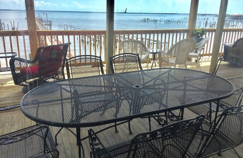 Large deck on 2nd floor great for watching sunsets and the cool Louisiana breeze. Underneath is large area with tables and chairs for entertaining. Great for boiling/eating crabs or the catch of the day.