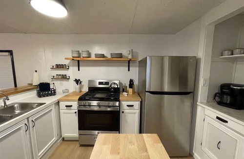 The property is equipped with Wi Fi, Large flat screen smart TV, record player. Enjoy a classic Led Zepplin Album, or if Adele is more your sound, kick back and mix a few martinis and cozy up to a wood burning fire in the fireplace.