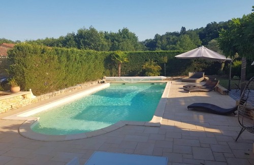 Stay in this luxury gite on the outskirts of charming Carsac Aillac, just 10 km from Sarlat and a short distance from Groléjac and Domme. The village is situated on the main river and overlooks the impressive Dordogne valley. In high season, the owner stays elsewhere, and you can rent the main house and the gite together