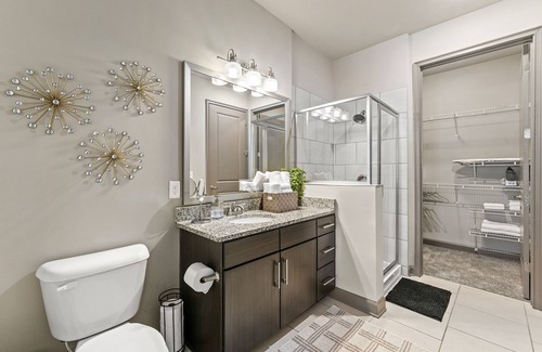 Enjoy a stylish experience at this centrally-located place. Nestled right in Atlantic Station with shops and restaurants within walking distance. The Mercedes Benz Stadium is 2.9 miles away. Piedmont and Grady hospitals 1-3 miles away for traveling medical personnel. The property is equipped with a workout facility, swimming pool, fire pit, and a beautiful sky deck with a city view.
