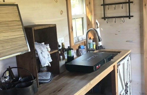 Tiny at Grandview Camp is an amazing glamping space on 116-acre farm tucked away on the Cumberland Plateau in Grandview Tennessee. You know you are somewhere special as you drive in the private driveway meandering through the woods as the property opens up to a private mountain dream. This is glamping, no running water and min. electricity provided by solar. Gas stove and firewood for fire pit provided. Charcoal grill (bring charcoal). BRING YOUR OWN BEDDING/TOWELS