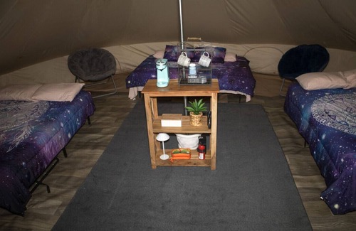 Best-rates for the Glamping Tent High Roller starts from $222 per night with includes Parking, TV, Security/Safety, Barbecue/Outdoor Cooking, Child Friendly, Internet, Air Conditioner with all other facilities. RBO matches every traveller with their perfect accommodation, whether you are travelling with a group, friends, family, or pets.