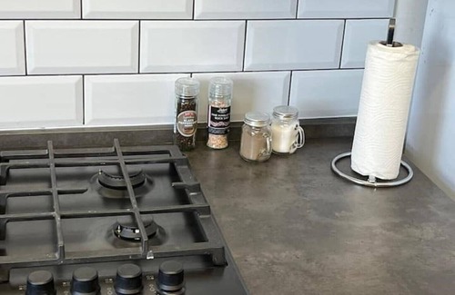 This apartment boasts a spacious and well-lit interior, with high ceilings in every room, including the kitchen. It can comfortably house up to four guests while still providing ample space. The property also offers high-speed Sky fibre-optic broadband and Sky TV services. The kitchen is the centrepiece of the apartment, equipped with a gas stove and ovens. It is both functional and tidy. The kitchen gives a lovely view of the open garden and street.