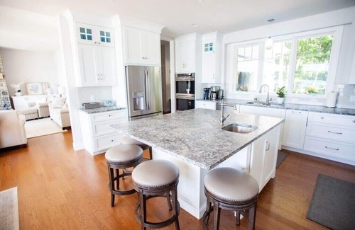 Newly constructed in 2019, Glen Den is the jewel of Little Glen Lake with over 100-ft of sandy bottom lakefront, kayaks, paddleboards and a mooring if you choose to rent or bring a boat (ramp available). The main floor is open-concept with brand new appliances including a gas range with a large patio and barbeque. Each of four adult bedrooms has a king bed and en suite bath. The bunkroom has four full beds on the bottom with twins on the top and its own designated bathroom. There is also a second-floor nursery and a downstairs half-bath for guests. If you decide to leave Glen Den, you can walk to Alligator Hill trail, the 22-mile Heritage Trail, DH Days Farm or The Narrows Marina. It’s a short bike or drive to Glen Haven, downtown Glen Arbor, Sleeping Bear National Lakeshore, The Homestead and Empire Beach on Lake Michigan and about 30-minutes from downtown Traverse City, Leelanau Wine Country or Crystal Mountain Resort and Spa.