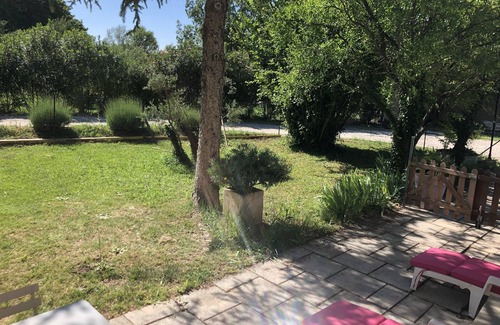 On the other hand, the garden is composed of olive trees and a hazelnut tree. You will have the opportunity to relax in the grass on deck chairs in the shade of a large parasol and enjoy your aperitif facing the setting sun.
