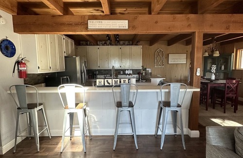 Inside The Gold Country Cabin, exudes warmth and coziness, with rustic decor and modern conveniences. Each room features clean and comfortable beds, plenty of natural light, and ample seating for your party to hang out and unwind.