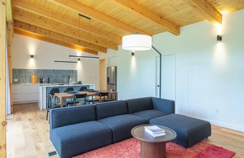 Tucked away in the charming town of Enterprise, Ontario, lies a newly built gem awaiting its first guests. This beautifully designed, custom-crafted home offers an inviting retreat for two couples or a small family of four, all set in the serene Eastern Ontario landscape. Come September, this enchanting abode will boast a third bedroom, a dedicated office space, and a luxurious hot tub, making it even more appealing for a tranquil getaway.