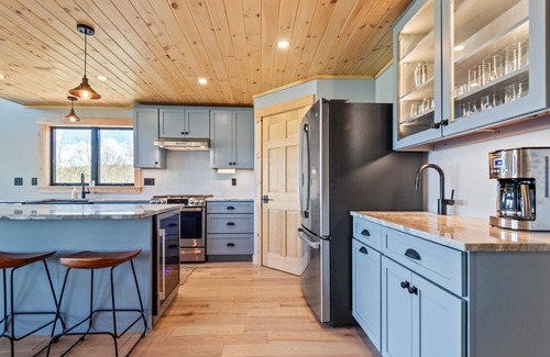 Golden Sunset is a stunning newly built property in The Overlook neighborhood of Rangeley, Maine. This beautifully designed 4-bedroom home offers modern comforts and stylish finishes throughout, perfect for families or groups looking for a mountain retreat. With spacious living areas, a sleek kitchen, and cozy furnishings, you'll feel right at home whether you're gathering for a meal or relaxing by the fire.