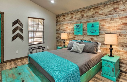 Modern comfort meets cozy digs at this chic Gordonville vacation rental. Nestled in a serene community, this single-story unit features a 1-bathroom studio floor plan, a well-stocked kitchenette, a Smart TV, a queen-sized bed, and additional vacation rentals on-site for large groups. Avid fishermen can enjoy casting a reel on Lake Texoma, nature enthusiasts can take a stroll along the Cross Timbers hiking trail, and golfers can hit the links of Buncombe Creek Golf Course.