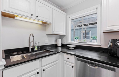This unique and beautiful 2-story, fenced single-family home boasts 5 bedrooms, 2 fully equipped kitchens, and exclusive parking for up to 5 cars, including a detached parking garage for a mid-sized car/SUV. Enjoy a keyless entry and a welcoming porch with rocking chairs. The living room features a wall-mounted 65-inch LG smart TV and opens to 4 bedrooms upstairs and 1 bedroom downstairs, including a master suite on each floor. The home sleeps up to 10-12 adults with the option to add an air mattress. All 5 bedrooms come with high-end mattresses, including Nectar and Euro-top, and most of them smart TVs with Netflix, Amazon Prime, and Disney subscriptions. 2 Full bath including a beautiful luxurious bath downstairs which has a beautiful Walk in shower and 2 people jetted bathtub. The 4th bedroom upstairs opens into a spacious fenced private backyard, with a good size deck. The lower level has a beautiful romantic themed downstairs bedroom with lights for ambience and 43 in LG TV. Large open living room with kitchen downstairs and good place to entertain a large group. There is another room downstairs which has a futon/sofa and can sleep 1 person. There's also a spacious backyard with a deck, grill, and outdoor dining. A flexible check-in and checkout time is available based on availability. Experience luxury and comfort in the heart of Broad Ripple, just 10 minutes from nightlife, restaurants, and shopping centers.