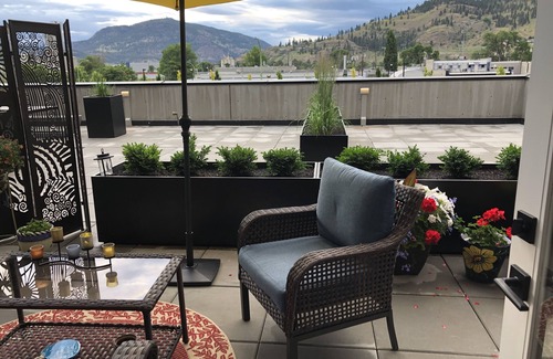 This condo is centrally located in downtown Kelowna, 2 blocks to beach, 5 minutes to hike Knox Mountain and close to bike trail as well as surrounded by shops, restaurants and coffee places. Beautifully appointed with huge deck. King bed, ensuite washer and dryer, fully equipped kitchen and barbeque on the deck and view of Knox Mountain. Undergraduate parking. You will love it!