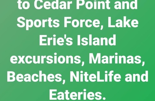 MANY LUXE AMENITIES. A LUXURY DESTINATION ON ITS OWN. Cedar Point, Cedar Point Sports Force Parks, Kalahari Waterpark and Convention Center, Lake Erie Islands, Fishing, Marinas, Beaches, Nite Life, Multiple Eateries . This property has plenty of space for 20, plus a babycrib is available. There are 3 brand-new Queen sized pillow top beds, 2 brand new Full sized pillow top beds, 3 Queen sized memory foam sleeper sofas, and 2 brand new bunkbeds with 4 adult twin mattreses Hotel quality bed linens, 'My Pillows' and 'Memory Foam' pillows top all beds. There is a dining room table that easily seats 20. The home boasts a well stocked coffee bar and snack bar. Game room, outdoor patio with a very large propane grill and childrens play center in a fenced-in, private, back yard.