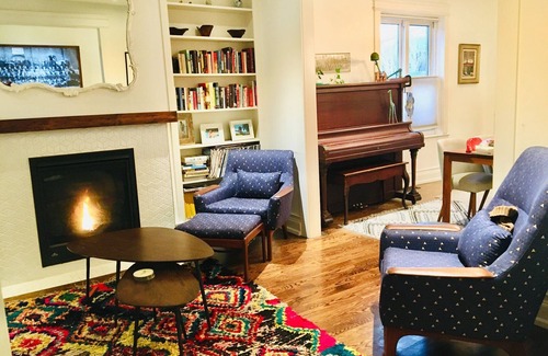 On the main floor is a gas fireplace and a cozy living room which opens into a walnut dining room that seats 8 and full open kitchen. The kitchen is a chef's paradise, stacked with all amenities one could want (gas stove, blendtec blender, Wonder Oven (air fryer and toaster), Instant Pot, Cast Iron pot and pans, non-stick pans, espresso/ cappuccino maker...)