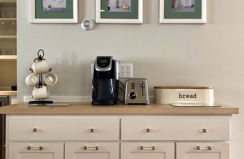 Three stories of spacious living include a gracious first floor entry, queen bedroom with en suite bathroom, open living room, den/office, half bathroom, bar area with Sub-Zero and kitchen with island and eat-in dining table. The second floor includes two queen bedrooms, full bathroom with tub, media room with 55" 4K TV and custom queen pull-out sofa and king master bedroom with en suite bathroom and TV. The third floor includes a sleeping area with two twin beds, en suite bathroom, game table and bean bag chairs and well as many board games, books and DVDs for kids to watch on the TV. A pack-n-play along with sheets and a high chair are also available for your use. The first floor mudroom and laundry area has ample shelving, storage, washing machine and two dryers. L'Occitane shampoo, conditioner, body wash and soap are provided in each bathroom along with blow-dryers.