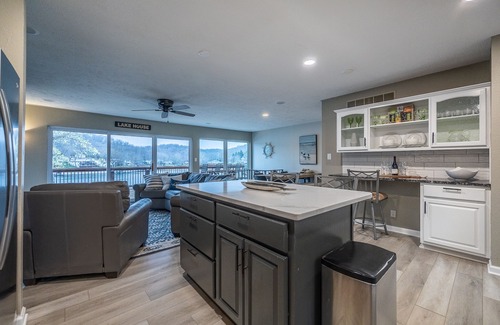 Escape to a newly remodeled lakefront retreat nestled in the tranquil Gravois Arm of Lake of the Ozarks. This spacious 4/5 bedroom, 3 bath home offers the perfect blend of convenience and seclusion, with a private 5th bedroom providing an exclusive hideaway. Situated at mile marker 3.5, our home boasts easy access to all the lakeside excitement, while still offering a serene setting in Cedar Creek Cove.