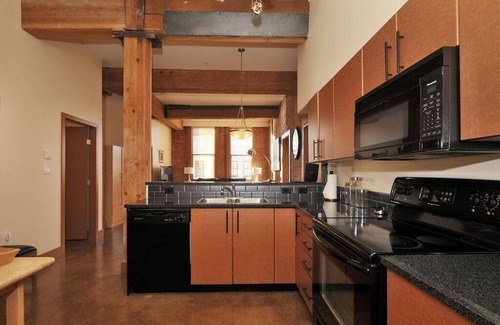 The Vogue complex was converted from offices to apartments in 2006 and is a special spot in one of the most unique heritage buildings in Victoria. This unique condo has 2 bedrooms and 2 full bathrooms with a king bed in the master and the option for 2 twin beds or 1 king bed in the second bedroom. Just let us know ahead of time, and we will have it ready for you. The high ceilings, exposed brick, and loft beams are just a few items that bring charm to this unit. There are over 950 square feet to relax with your loved ones, try out the fully equipped kitchen, or enjoy the sights of downtown from your balcony.