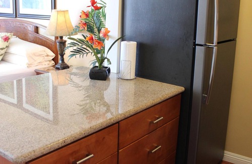 Welcome to our oceanfront studio condo located on the 2nd floor of the newly renovated Lahaina Shores Beach Resort. You’ll love the beautiful ocean and sunset views from the lanai (balcony), with occasional whale sightings during Fall and Spring. The studio has a king size bed and a kitchen outfitted with a generous supply of kitchen utensils. We also have available: Tommy Bahama beach chairs, boogie boards, an umbrella, ice chest, and beach towels to use on your stay with us.
