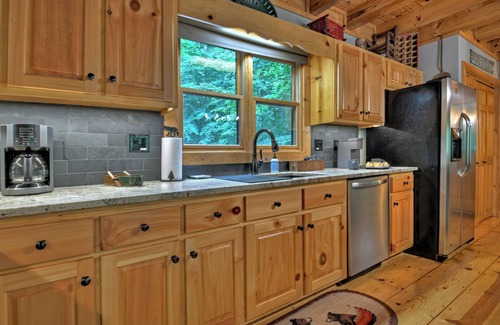 The fully equipped kitchen is a chef's dream, with stainless steel appliances and a spacious buffet island. Whether preparing a quick breakfast or a lavish dinner, you'll find everything you need to satisfy your culinary desires. Enjoy meals with wine from local Blue Ridge or Ellijay wineries.