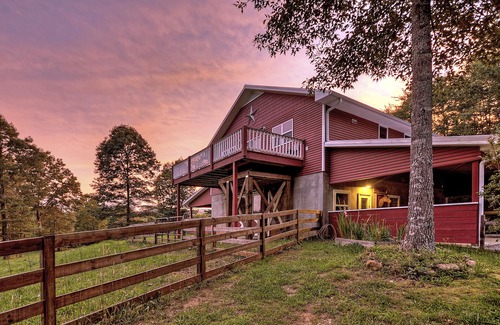 Mountain Ranch Retreat is a just that - a beautiful ranch in the mountains where you can kick back and relax to multiple mountain vistas! Whether that be from the large deck while you eat breakfast, the hot tub, your private fire pit or vistas viewed from inside the barn house, you will find yourself embraced by the beauty of our farm, back dropped by the North Georgia mountains. Renovated in late 2017, our retreat is actually the second floor of our state of the art horse barn. Upon pulling up the drive, you are greeted by our Mountain Ranch Retreat sign, with a full sized horse head welcoming you to the property. Just inside the main door, the entrance to our retreat is the first door on your right. When you enter, the warm rustic staircase beckons you to see what's at the top!