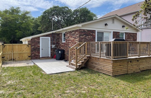 Gorgeous fully remodeled beach bungalow. Enjoy a stylish experience at this centrally-located home. Atlantic Beach's newest gem has finally arrived. Steps to the beach, roomy, comfy and close to all amenities you could ever need. This 3 bedroom, 1 1/2 bath cozy home has open floor plan, beautiful kitchen equipped with everything you would want. Granite counters, stainless steel smart appliances, farmhouse sink, etc… Wonderfully decorated home. Back private deck with gas fire pit and grill.