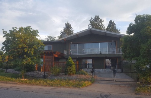 Yours to enjoy, the entire separate top level of our upscale & beautifully updated home with a covered carport, private fenced back yard, including patio area. There's a BBQ & a private balcony overlooking the city with ample onsite parking in a quiet, convenient & safe neighborhood only minutes to downtown Vernon. We are less than a 10 minute walking distance to the hospital & less than a 10 min drive to Okanagan & Kalamalka lakes & 25 min drive to Silver Star & 30 min to Kelowna Int'l Airport. Guests will have their own private backyard and covered patio area with a BBQ as well as their own private front balcony with fantastic city and mountain views of Vernon and surrounding area. There are 3 spacious bedrooms, each with a queen sized bed and lots of closet space, plus one fold up rollaway cot if needed. In the bathroom, pamper yourself in the large soaker tub or in the gorgeous shower with a rainfall shower head and jets. For those with a culinary touch or desire, delight in a fully equipped gourmet kitchen complete with small appliances and cooking essentials. Enjoy the fantastic panoramic city view from the breakfast bar, dining table, living room or the large covered deck. There is air-conditioning, your own washer and dryer and the open concept living room has a large TV, WIFI, gas fireplace and large desk area. There is also a city bus stop nearby just around the corner. We are also located not far from the Vernon Jubilee Hospital and the Mission Hill Park.
