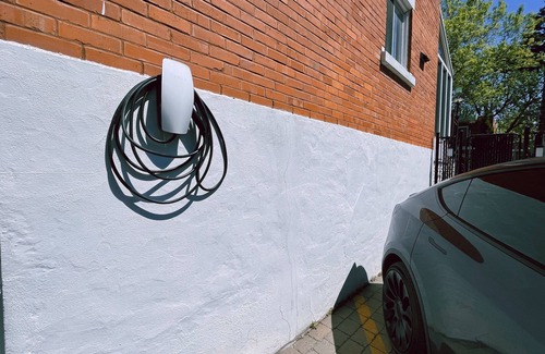 Electric car charging station on site