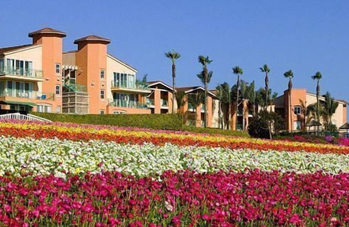 The Resort's 12 lushly landscaped acres stretch along a ridge overlooking the Pacific Ocean and the Carlsbad Flower Fields and contain a wide array of recreational amenities such as an Olympic-sized pool, three spas, a children's interactive water park and family pool, a fully-equipped fitness center and an activity center and game room for the kids. The property features 161 beautifully appointed vacation villas of different sleeping capacities. Also on site is the award-winning Karl Strauss Brewery Restaurant and daily organized activities for adults and kids are offered.