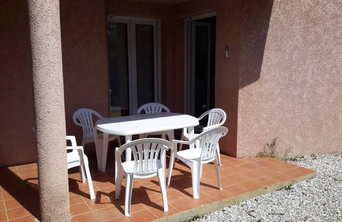 a large south-facing terrace equipped with a garden furniture for 6 people, an electric plancha.