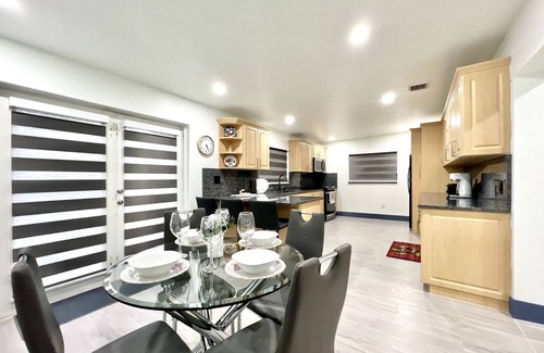 Grand Villa resort B: a freshly remodeled 2BR retreat in Miami's quiet Westchester neighborhood. Sleep up to 6 on plush beds, unwind in sleek walk-in showers, stream on the 55" smart TV, and cook in the open kitchen with stainless Samsung appliances. Enjoy blazing 500 Mbps WiFi, central A/C, room-darkening shades, washer/dryer, and a private entrance. Outside: heated year-round pool, hammock, BBQ, ping-pong, balcony, and alfresco dining. This is a unit that shares the patio and pool area with other guests staying on the property in the other unit. Cancellations are subject to a 3% processing fee.