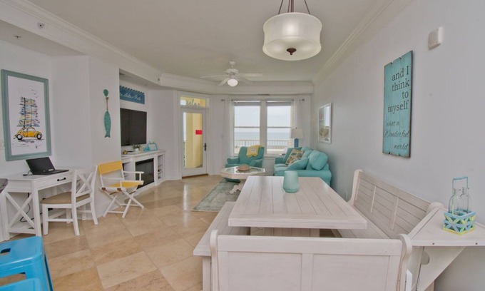 Grande Villas E-2 is a 2-bedroom, 2-bathroom, oceanfront condo with beautiful views of the sand and sea! It is comfortably nestled in the small town of Indian Beach with easy access to local restaurants, shops, and all that the Crystal Coast has to offer. A plethora of community amenities makes this the perfect little oasis to live out your vacation fantasies! This condo is equipped with high-speed wireless internet for your convenience! You will find 3 flat-panel TVs, all equipped with basic cable, as well as 2 Blu-ray players. You can even wash your beach towels in the included interior washer/dryer to prepare for your next day of catching rays at the shore!